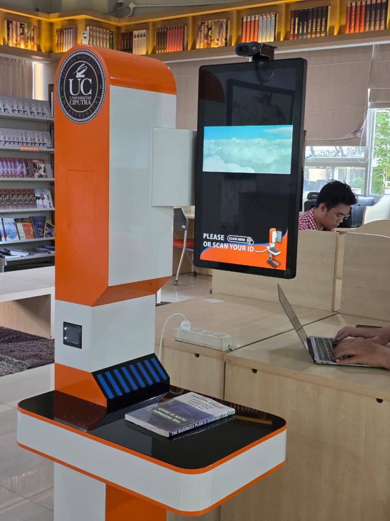 Sistem Peminjaman Mandiri (self-loan kiosk) menggunakan teknologi RFID (UHF) agar anggota bisa meminjam buku secara mandiri.